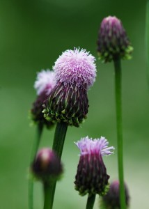 キツネアザミは他のアザミのように葉などに硬い棘はありません。