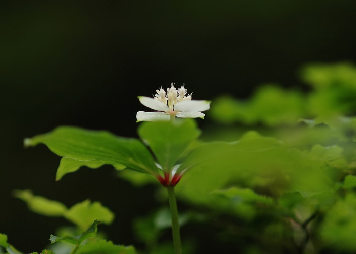 日陰に咲くことの多いドクダミも、光の中ではいい白をしています。