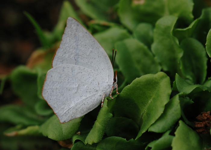 ウラギンシジミの裏側は光沢のある白で綺麗です。