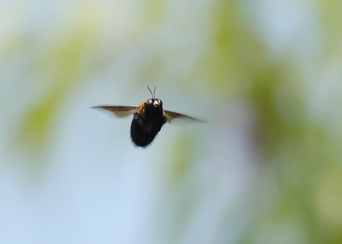 春、陽光の中このようにホバリング状態で飛んでいるのに出会います。