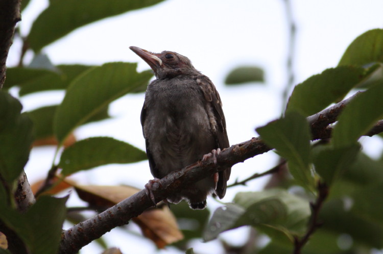 ヒヨドリの幼鳥です。尾羽がほとんどないです。何とか飛べますが、 まだ危なっかしいですね。