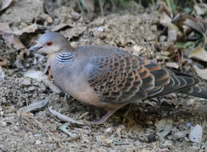 餌をくわえたキジバトです。いつ見てもパッチリ目玉。