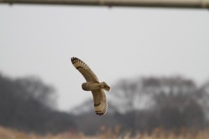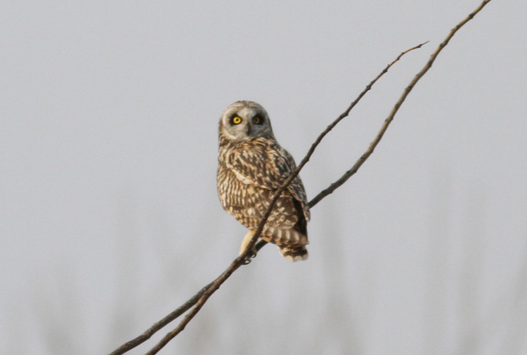 夕方の河原で待っていたら、木にとまりました金の目玉。