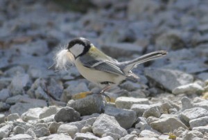 産座に使う猫の毛を集めにきたシジュウカラの多分♀です。
