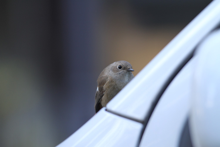 車のガラスに映った自分の姿が気になって仕方がないようす。