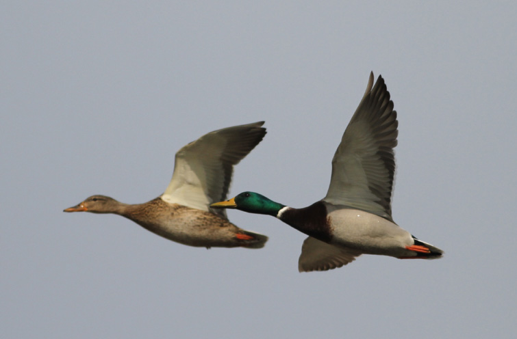 マガモの雌雄です。こんな顔して飛んでたんですね。