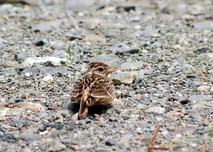 まるで卵を抱いているような姿のヒバリ。