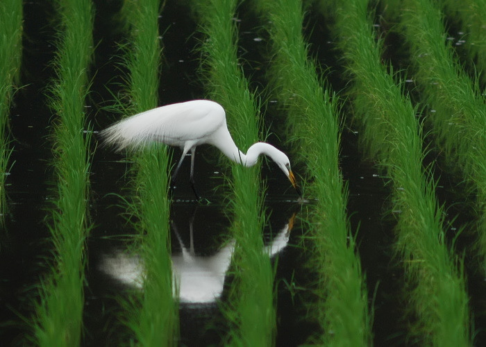ダイサギはゆっくりと歩き回って餌を探していました。