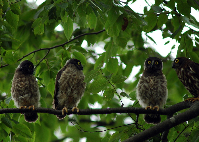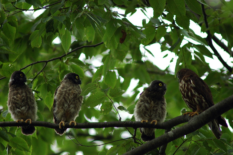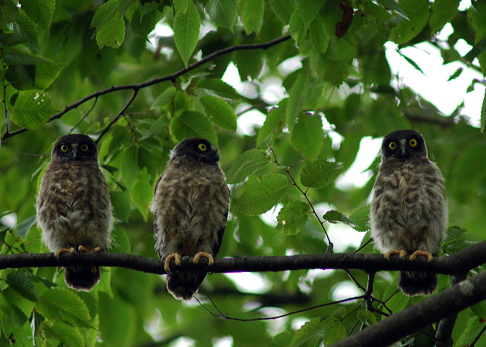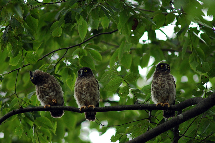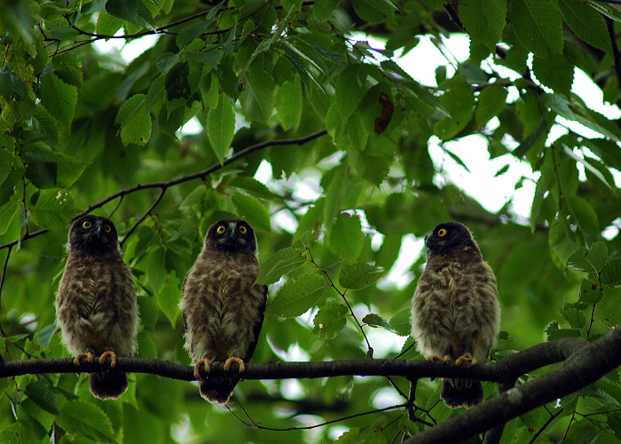 今年アオバズクを載せるのは2度目です。この前は雛を写せませんでしたが、今回別の場所で写しましたので載せておきます。3羽並んでいるところは本当に可愛く、微笑ましい光景でした。