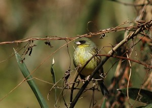 草のこんなに細い枝にとまれるんですから、軽いんですね。
