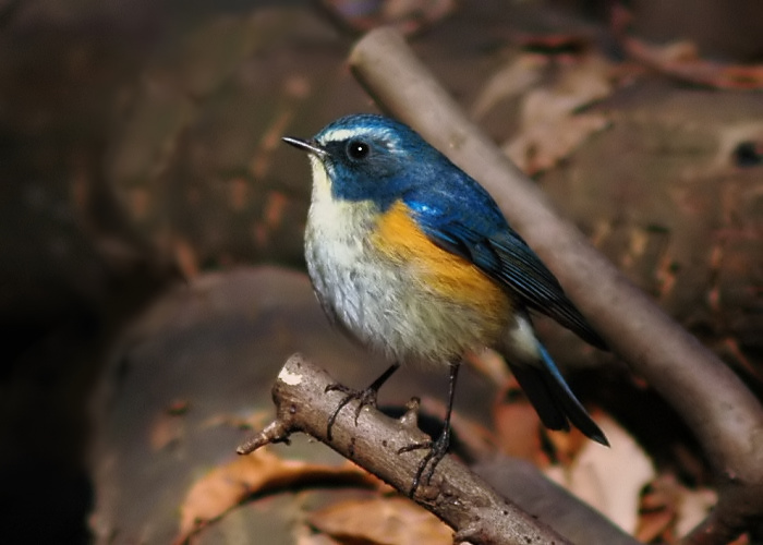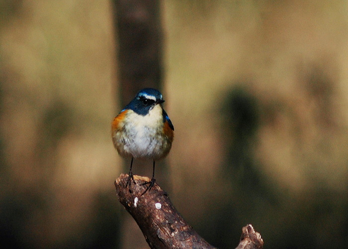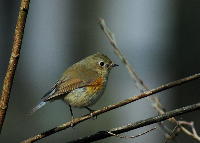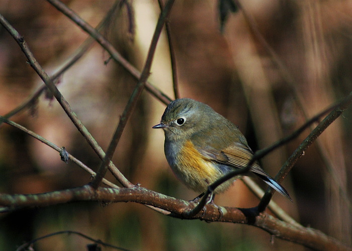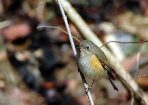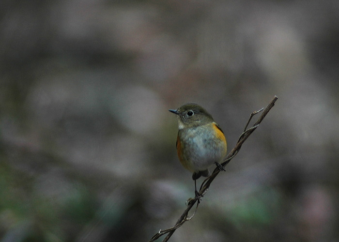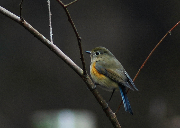 今年すでにルリビタキは載せましたね。また撮りましたので載せます。綺麗で可愛いですからね。今回は悩みましたがやはり昨年生まれの若い雄のようです。肩のあたりや目の上あたりがやや青みがかり、脇の黄色もオレンジがかっています。雌はもっとレモン色でしょう。