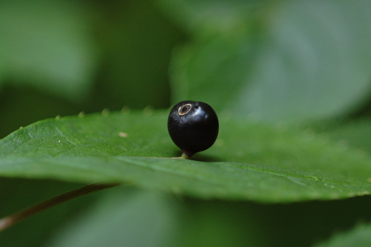 ハナイカダの実はもちろん葉の真ん中につきます。こちらこそ筏に乗っているようです。ミイカダ或いはイカダノミなんて名前にしたくなるほどです。