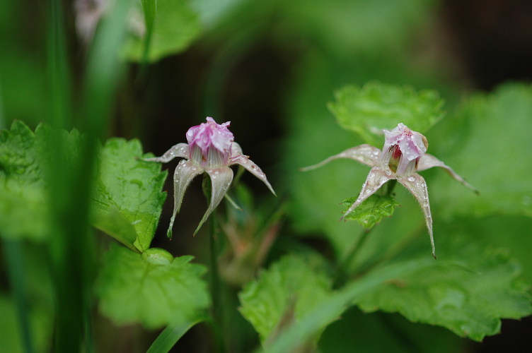ナワシロイチゴは可愛いピンクの花ですが、花弁を殆んど開くことなく、横に隙間があるだけの花です。
