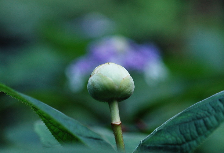 夏の暑い時期にちょっと爽やかな色のタマアジサイです。山道の脇などでよく見ますね。