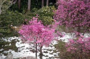 同じ日に別々の場所で撮ったものです。季節外れの雪の後です。
