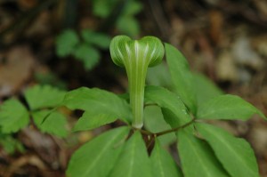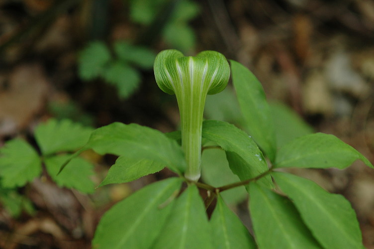 マムシグサには赤茶色のものから緑のものまであるようです。細かく種分けすれば分けられるのかもしれませんが。