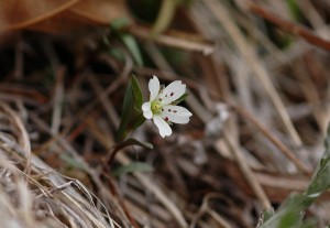 ヒゲネワチガイソウとよく似ています。同じような所に咲きます。でも、ワダソウの方がずっと少ないようです。私はワダソウの方が好きです。花弁の先端が桜の花弁のように凹んでいるところが魅力的です。