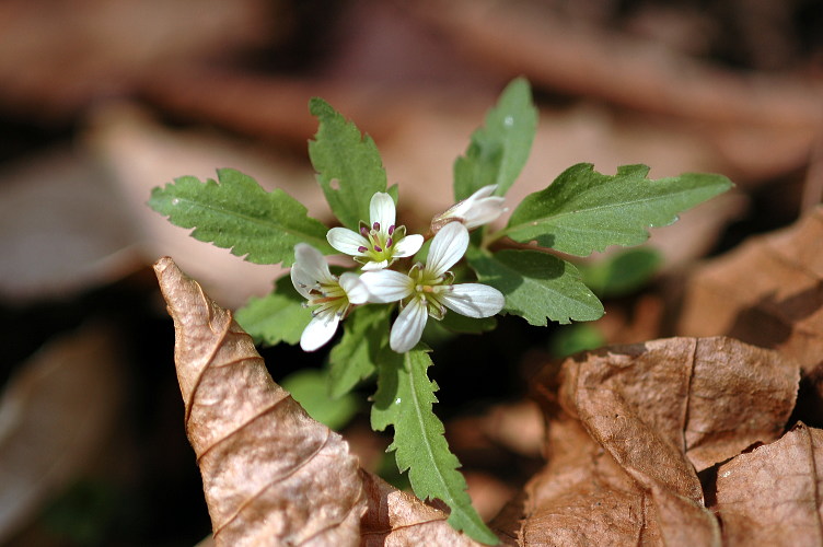 コンロンソウの仲間のうちでも、すがすがしい姿のミツバコンロンソウです。この花も春の日差しに笑っているようですね。