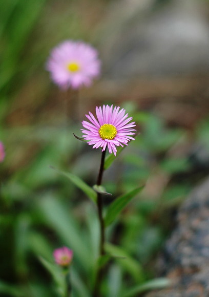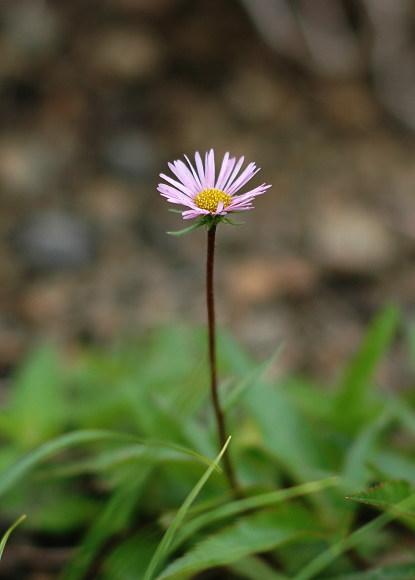 ミヤマアズマギクは花茎をスーと立てた可愛い菊です。ちょっと園芸種かと思うほど端正です。岩の隙間から花茎を立てている所などは可憐ですね。