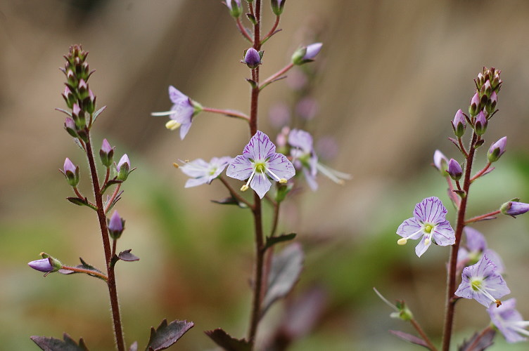 下界にあるクワガタソウの仲間で山に行くと見られるのがこのミヤマクワガタとテングクワガタ。どちらも花茎を立ち上げて穂状に花を咲かせます。どちらかというと、ミヤマクワガタの方が端正な感じですね。簡単な識別は葉で出来るようです。テングクワガタは全縁か微かな鋸歯がある程度ですが、ミヤマクワガタは明らかな鋸歯があります。
