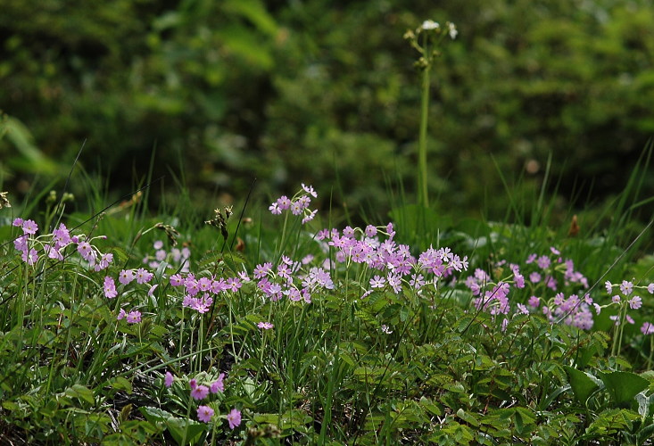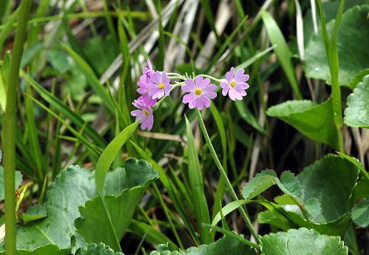 ユキワリソウというと、最近はミスミソウやスハマソウを指すのが一般的になりましたが、本名ユキワリソウはこちらです。ハクサンコザクラと似ていますが、花の大きさがだいぶ違います。ユキワリソウはかなり小さい。また花弁の切れ目がハート形でハクサンコザクラ程切れていません。