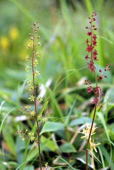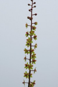 タカネアオヤギソウは、すっと立ち上がった花茎に小さな花をポツポツと沢山つける、緑色の花を咲かせる植物です。近縁にムラサキタカネアオヤギソウがあります。今回、どうもどちらか判別のつかない個体もありました。