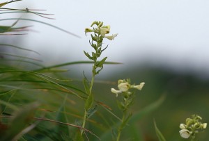 普通シオガマの類は左右対称の花を咲かせますが、このエゾシオガマとトモエシオガマはねじれたようになっていて左右対称ではありません。独特です。