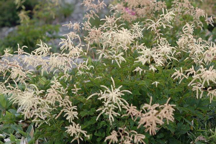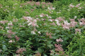 シモツケソウはピンクの花で目を引きますので、好きな人も多いようです。しかしこちらのオニシモツケは名前ほどではありませんがちょっと大柄でごっつい感じで「オニシモツケが好き」という人はあまりいないようです。