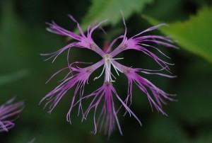 今はやりの撫子(なでしこジャパン)。これは高山に咲くタカネナデシコ。この個体はかなり花弁が細いようです。