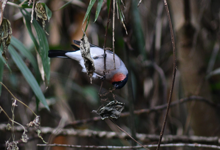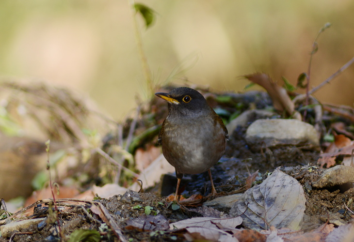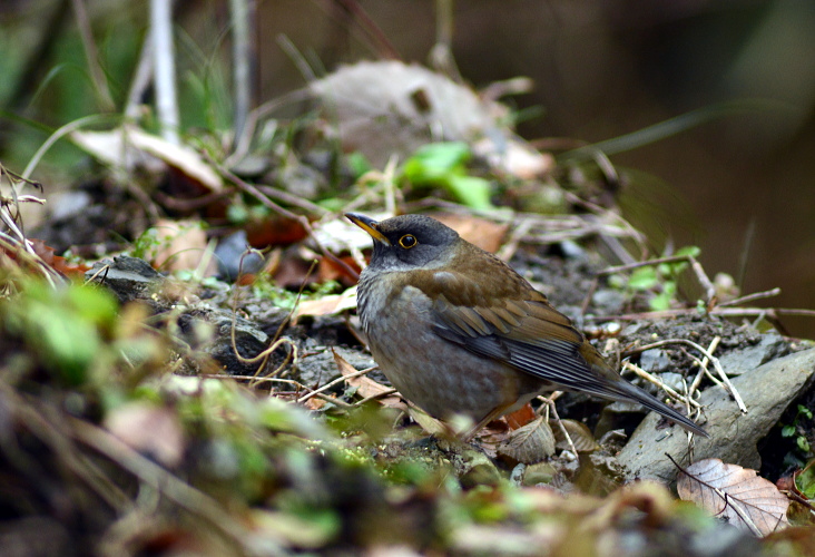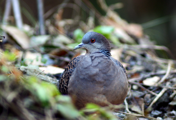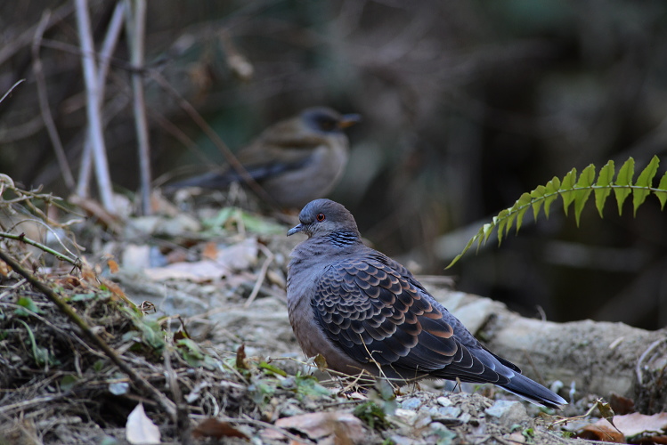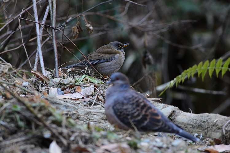 シロハラとキジバトが最接近です。シロハラピントとキジバトピントで。