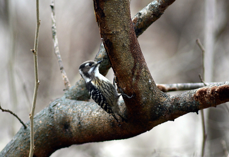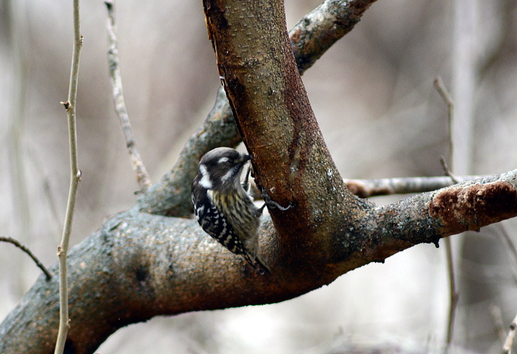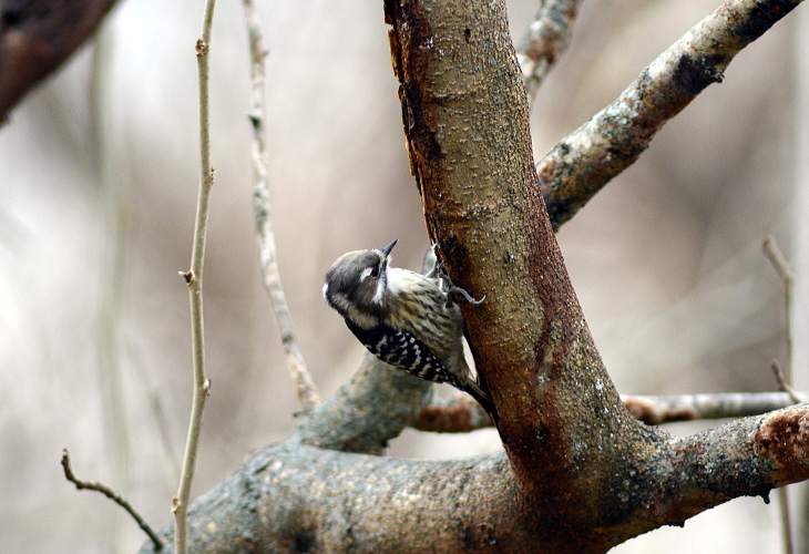 コゲラは結構逃げずにいてくれますので、撮る機会の多い小鳥です。今回も一生懸命に餌を探していて、なかなか逃げませんでした。