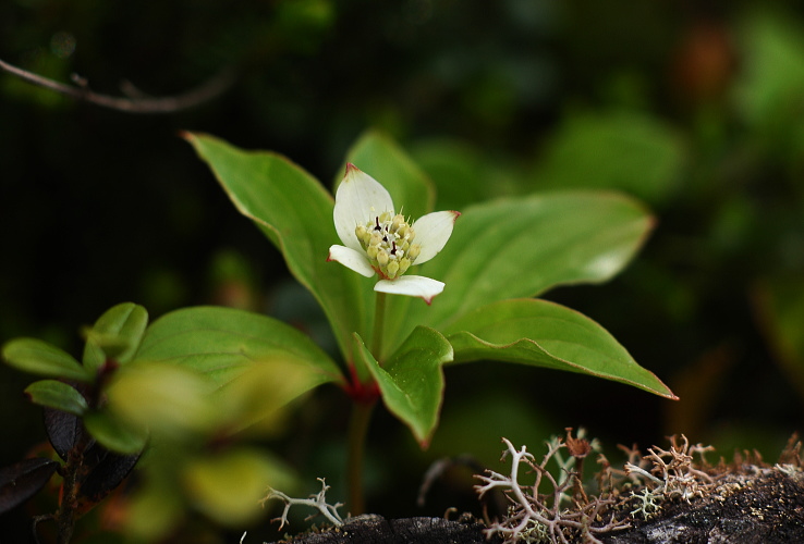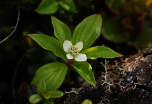 ゴゼンタチバナはちょっと高い山に行くとどこにでもあります。この花は高い山に来たという指標になるような花ですね。6枚の葉が輪生して中央に花茎を立てる独特な形をしています。