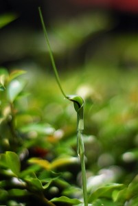 カラスビシャクはあのマムシグサの仲間です。しかしこちらは背丈が低く細い可愛い植物です。緑色をしているのであまり気付かれません。