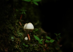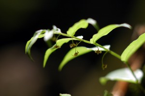 森の木の影に咲くタケシマラン。上から見ると花に気付きません。裏から覗いて下さい。ランとなっていますが、ユリの仲間です。