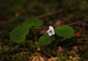 ウスバスミレは明るい所ではなく、森の中に咲いていました。
