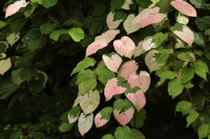 マタタビは普通葉が白くなるのですが、このマタタビはピンク色をしていました。
