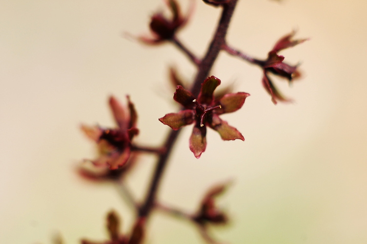 花が濃いえんじ色なのがシュロソウとホソバシュロソウ、そして高山に咲くムラサキタカネアオヤギソウです。