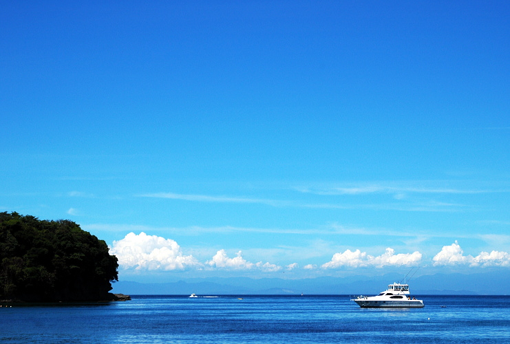 岸近くに停泊していたクルーザーです。青いきれいな海に白い船体が絵になりました。