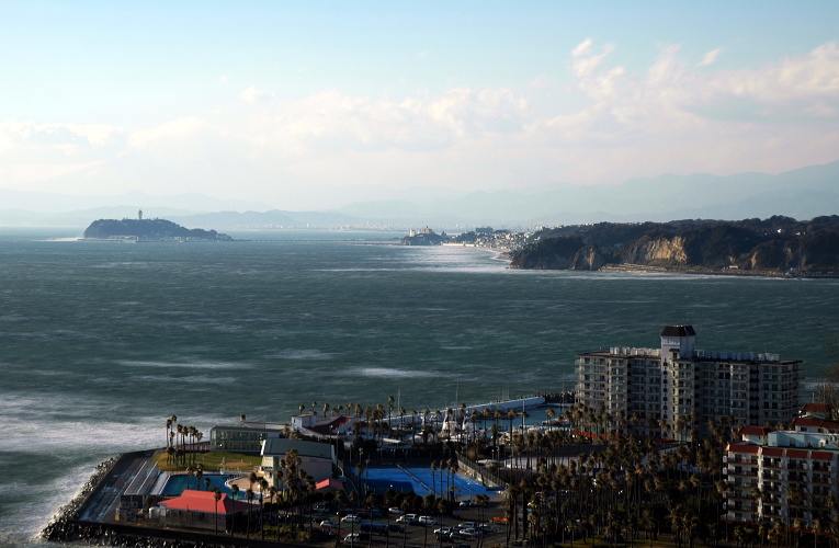 大崎公園から眼下の逗子マリーナと遠くの江ノ島です。