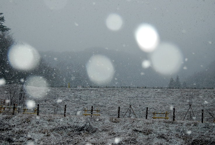久しぶりに関東に雪が降りました。雪の多い地方の方には申し訳ないのですが、ちょっとワクワクしました。いそいそと外に出ます。雪の降っている時の写真なんてここらではめったに撮れないので。