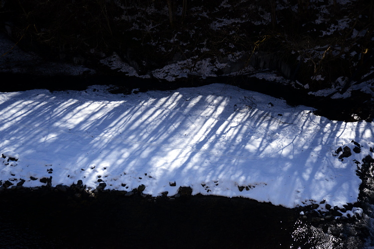 おまけ。岸の雪に冬枯れの木の影が面白かったもので。