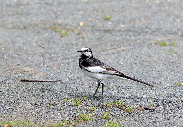ハクセキレイが砂利の駐車場の上を歩きまわっていました。