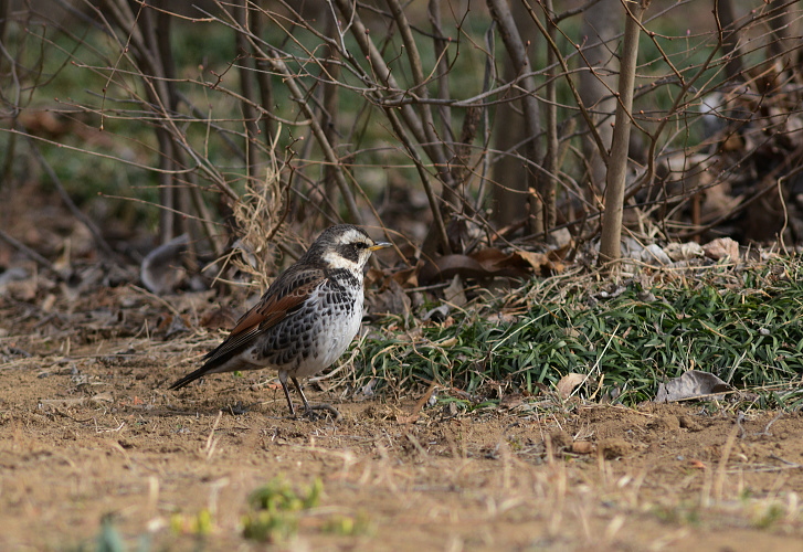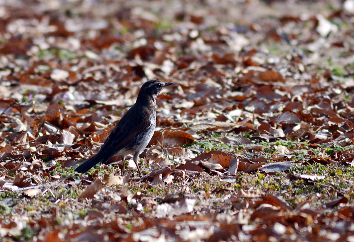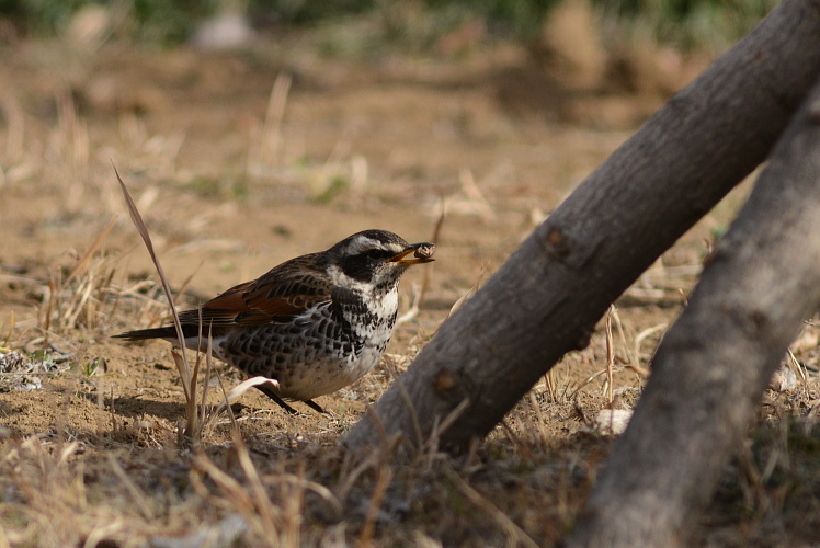 冬の畑で何か餌はないかと探すムクドリ。無事冬を越してくれ。