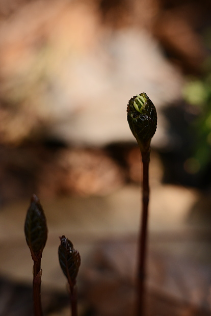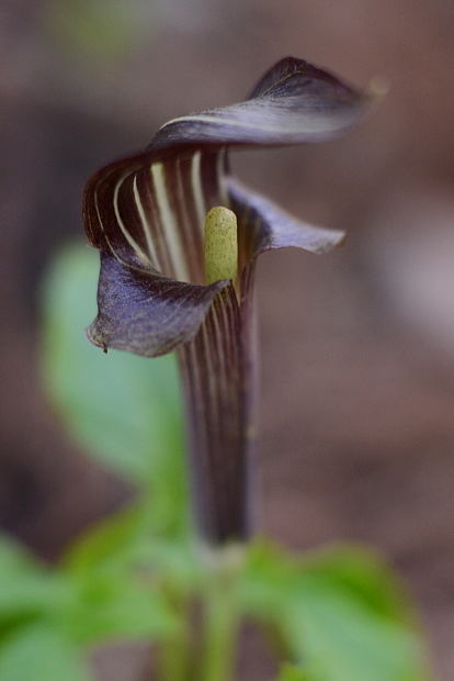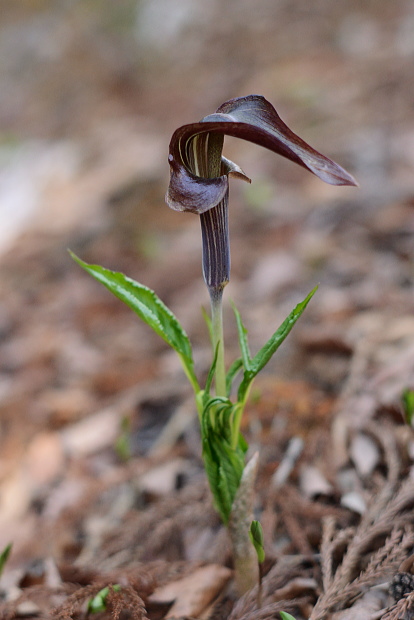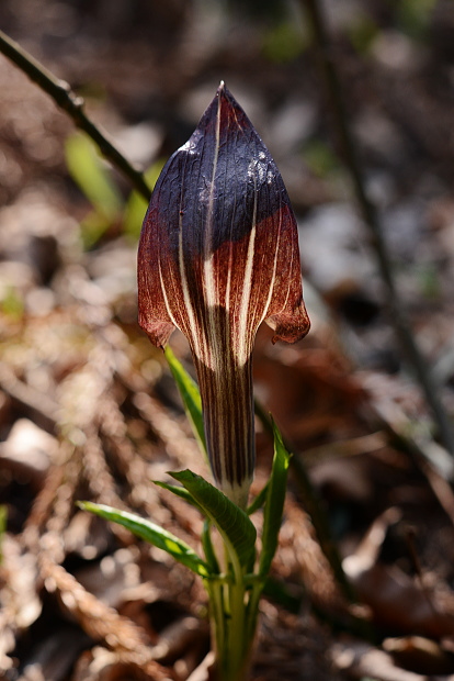 ミミガタテンナンショウはマムシグサによく似た近い仲間です。立ちあがった茶色い苞の横が耳のように出っ張っています。マムシグサほど不気味な印象はありません。