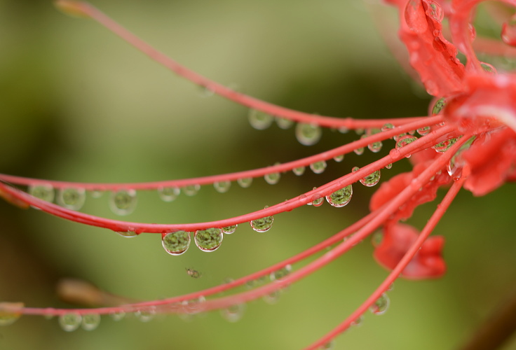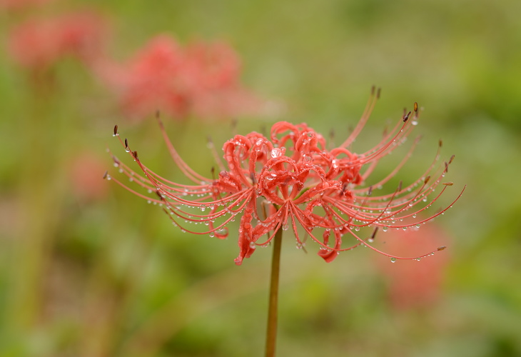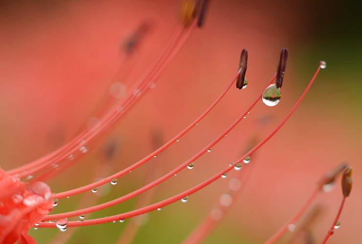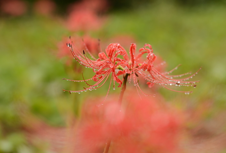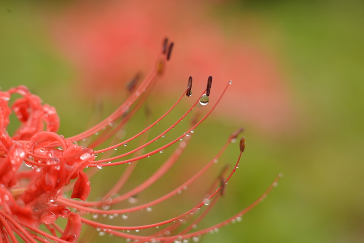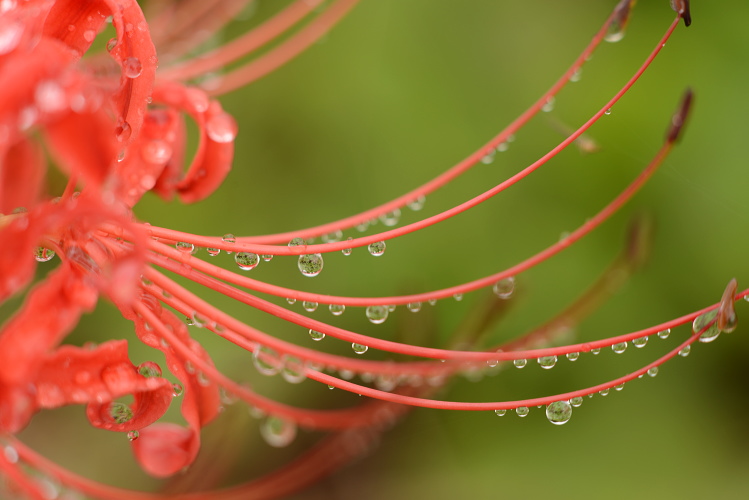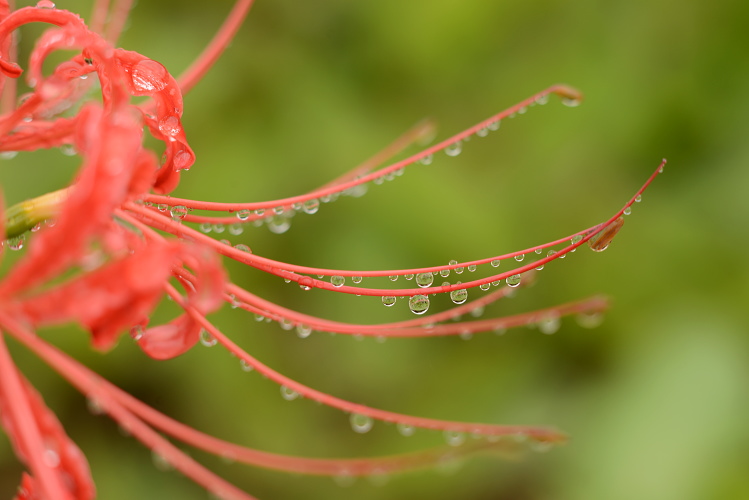 ヒガンバナは美しい雫をとどめてくれますね。