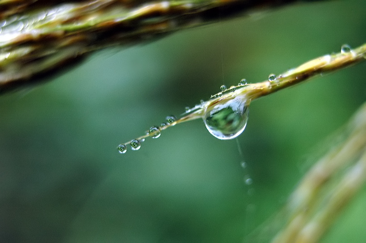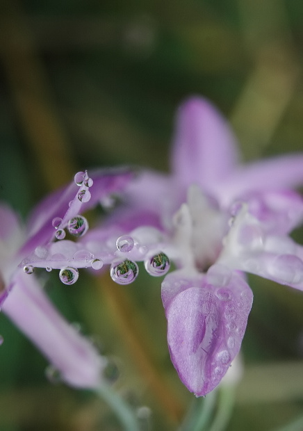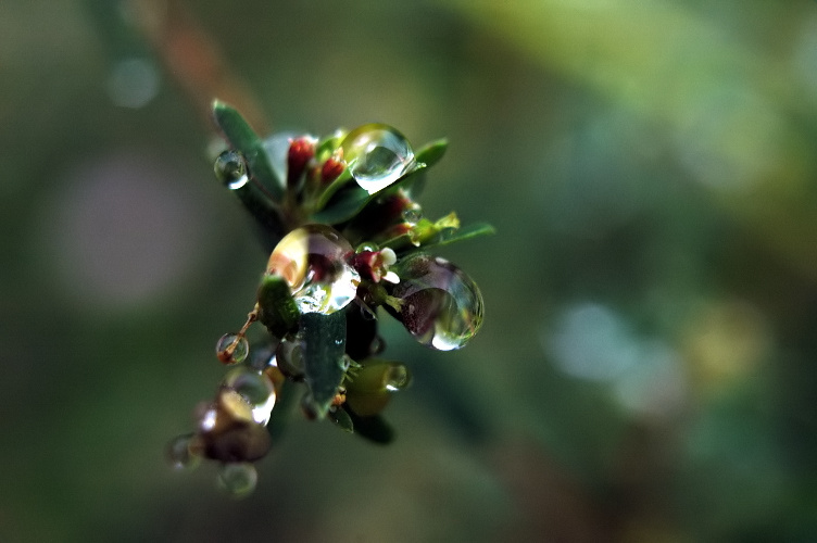 雨上がりに花や葉などについた雫がキラキラと輝いていました。