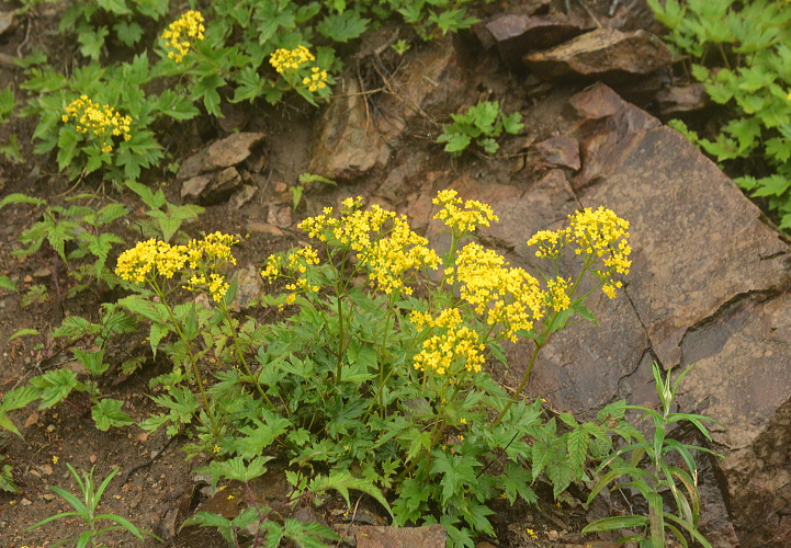 ハクサンオミナエシはかなり高い山の花です。岩陰に咲いている事が多いようです。