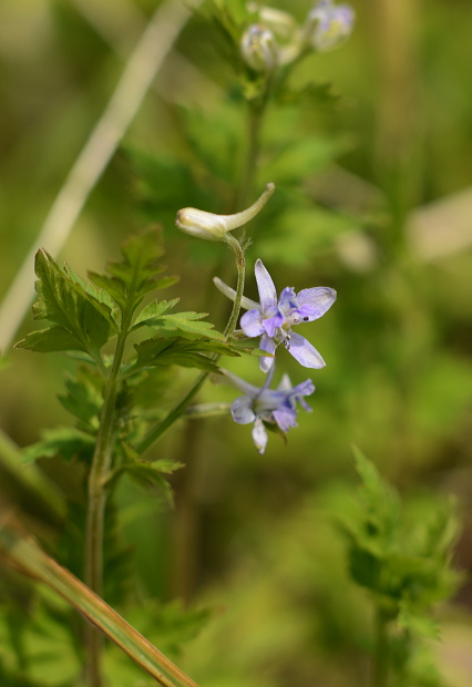 セリバヒエンソウは帰化植物です。ちょっと特別な形の花ですね。華奢な可愛らしい花です。