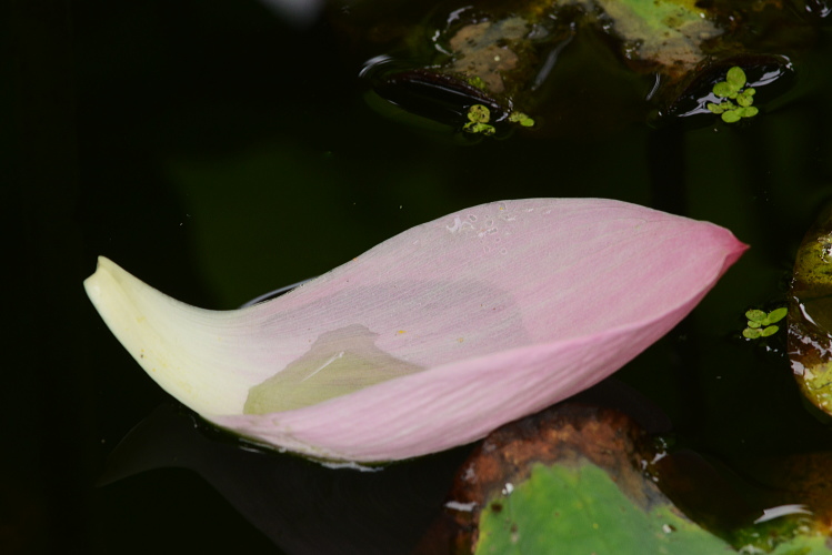 ハスの葉はきっぱりと水を弾きます。朝露や雨の水は葉の中央に綺麗に集まります。