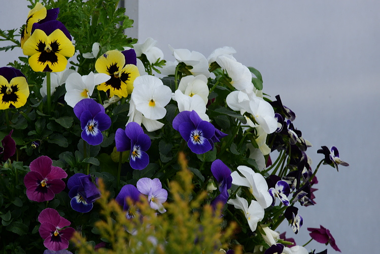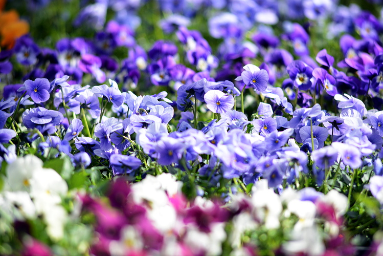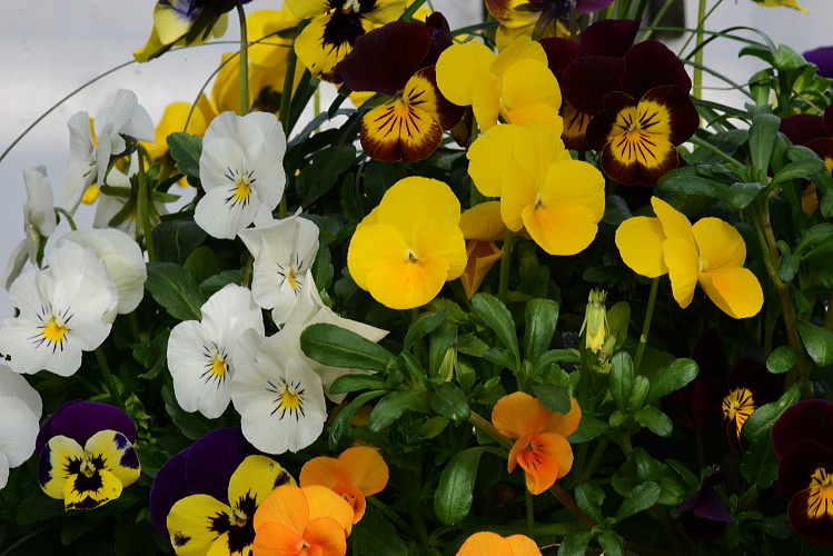 これは3月の初め、大きな温室内に咲いていたパンジーです。